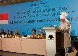 Orang-orang itu datang ke Singapura dalam rangka perhelatan akbar “Simposium dan Mulaqat Perdamaian” yang diselenggarakan oleh Ahmadiyya Muslim Community (AMC). Disebut akbar, bukan saja karena ratusan atau ribuan orang yang hadir, tapi terutama karena dihadiri Hadhrat Mirza Masroor Ahmad, Khalifatul Masih ke-5, Pemimpin umat Muslim Ahmadiyyah sedunia yang berkedudukan di London.