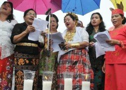 Ilustrasi gambar: Di depan lilin yang menyala Jemaat GKI Yasmin Bogor dan HKBP Filadelfia melakukan ibadah di Istana Negara, (22/12). Dalam aksi ini, mereka meminta pada pemerintah untuk menyelesaikan kasus penyegelan gereja mereka. TEMPO/Dasril Roszandi